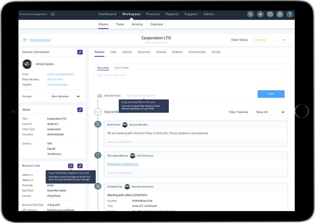 From client tracking and scheduling to deadlines, calendars and even an in-built customer relationship management (CRM) tool, our accounting practice management software is the one-stop-shop cloud-based software, designed for all your practice management needs. Use our suite of tools to manage every aspect of running your practice — and make smarter business decisions.